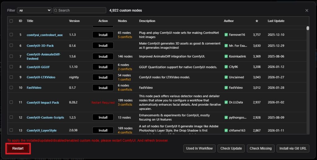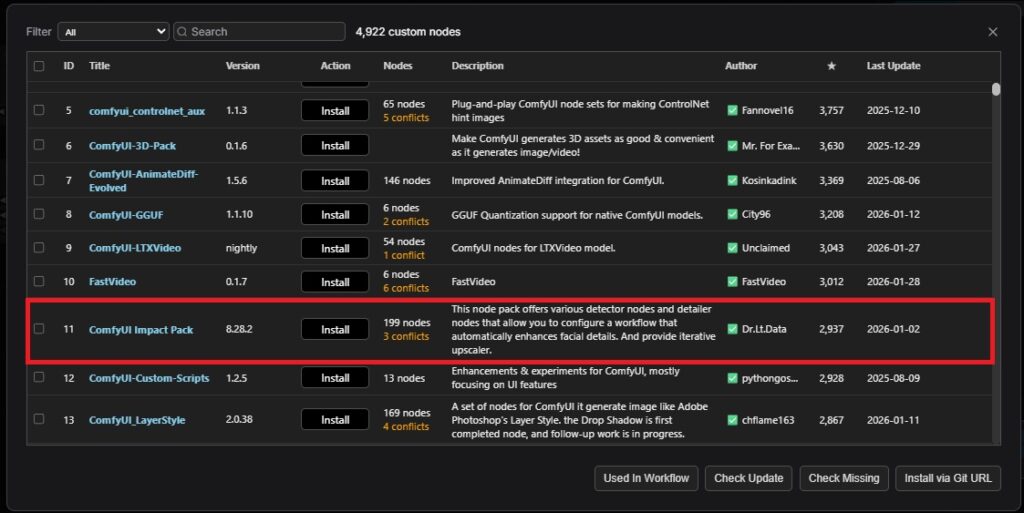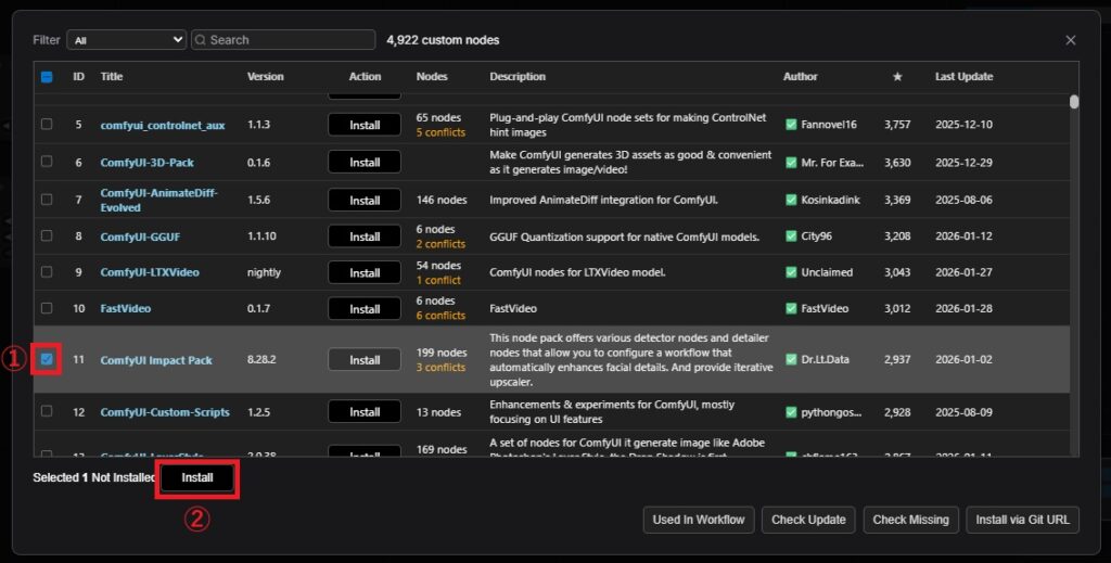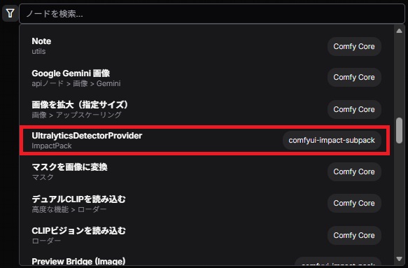 (※ComfyUI-Impact-subpackも上記の手順でインストール)