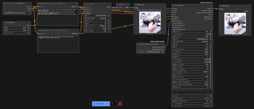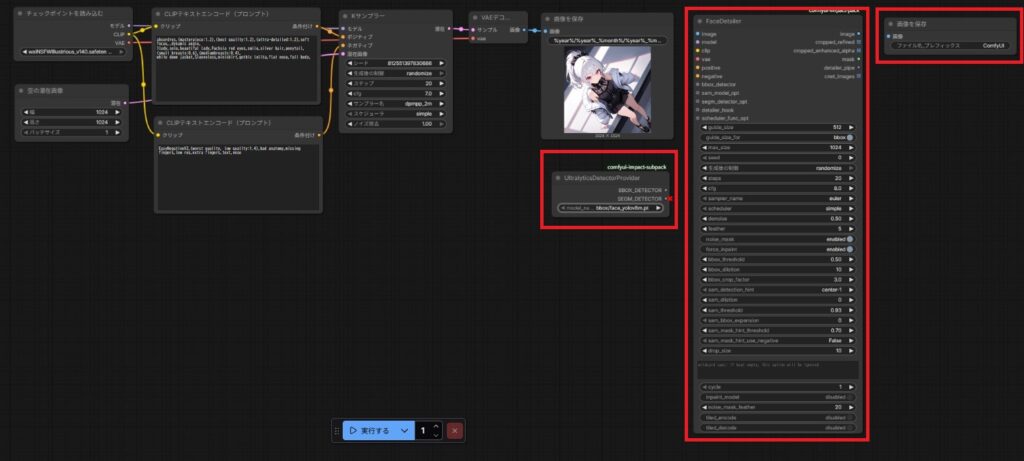 なので本来ならもっと基本的なノードから追加するべきなのでしょうが、実践を考えると第一にこのFaceDetailerを追加するべきだと考えました。